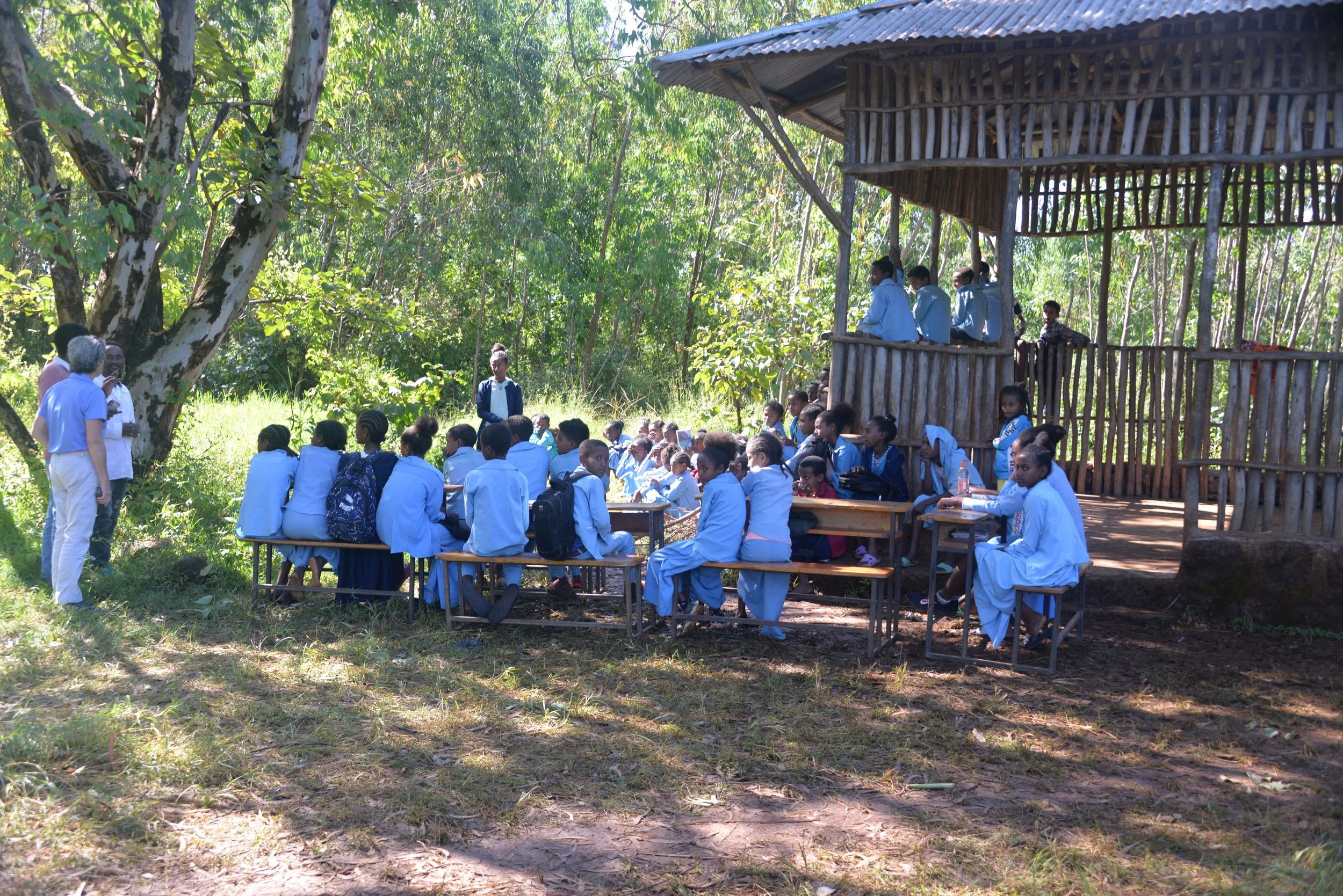 Sebatamit is a farming community where annual per capita income is roughly $200. About 22 years ago, villagers built an elementary school exclusively from community cash contributions to accommodate a growing student population that would otherwise have to travel 7 kilometers to the nearest school in Bahir Dar. All the buildings were made of mud block without any foundation, doors, or windows. The dusty floors forced teachers to cancel the last two classes every Friday afternoon to enable students to plaster them with fresh cow dung. In 2015, Partners in Education’s first project was to demolish those old buildings, replace them with new cement block ones, and apply our holistic model to Sebatamit’s education program.