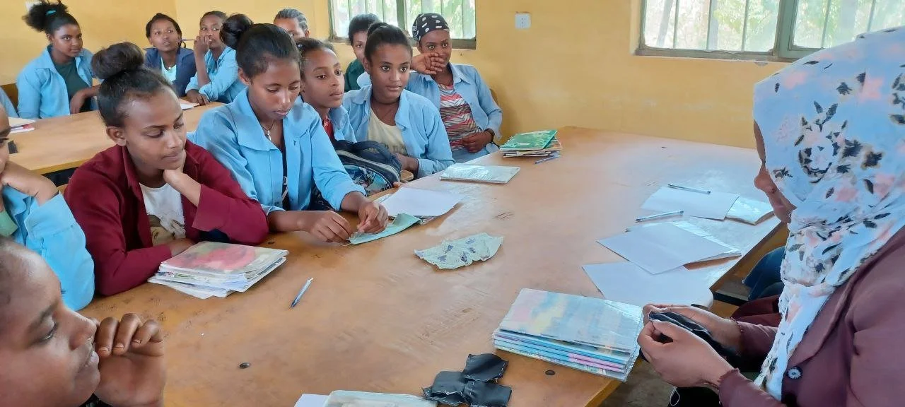 Water is brought to all schools for the purpose of sanitary and hygiene needs, as well as to irrigate gardens. We also strive to bring sanitation and hygiene training to our schools. Provision of training on making washable sanitary pads from locally available fabrics, personal hygiene, environmental sanitation, and in school support to female students, WASH club members and school leaders has been ongoing, with a Volunteers’ Girl Club recently providing training to 64 students to that end.